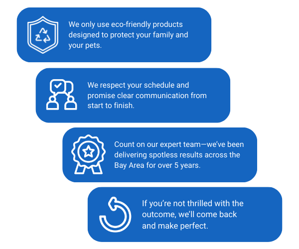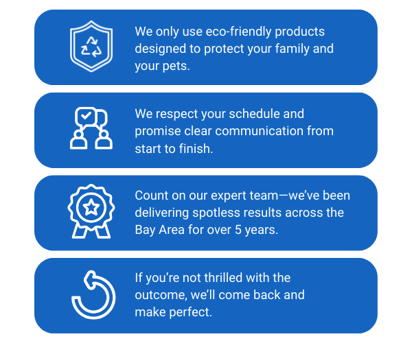 From residential to commercial business, Bay Area clients choose Ducks Solutions for reliable service, eco-friendly products safe for families and workplaces, and guaranteed results.
